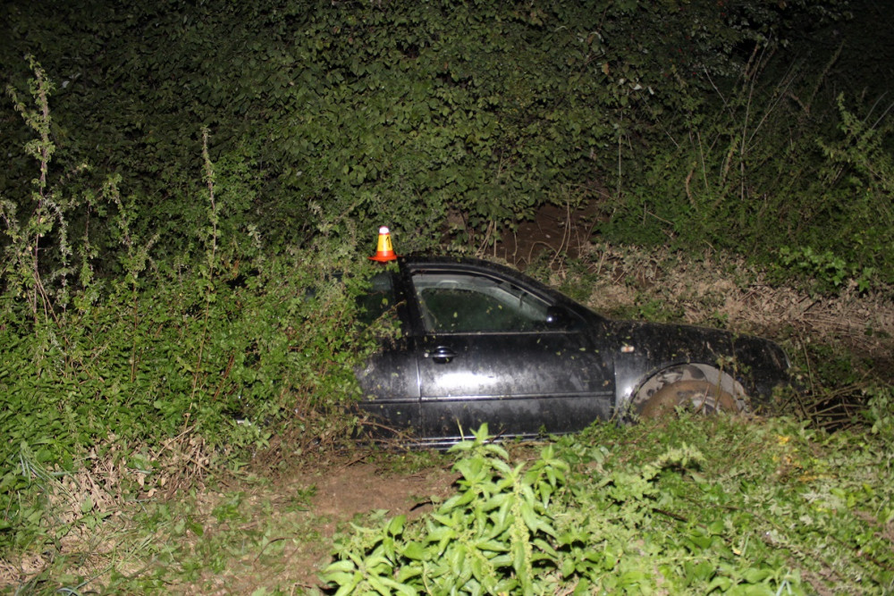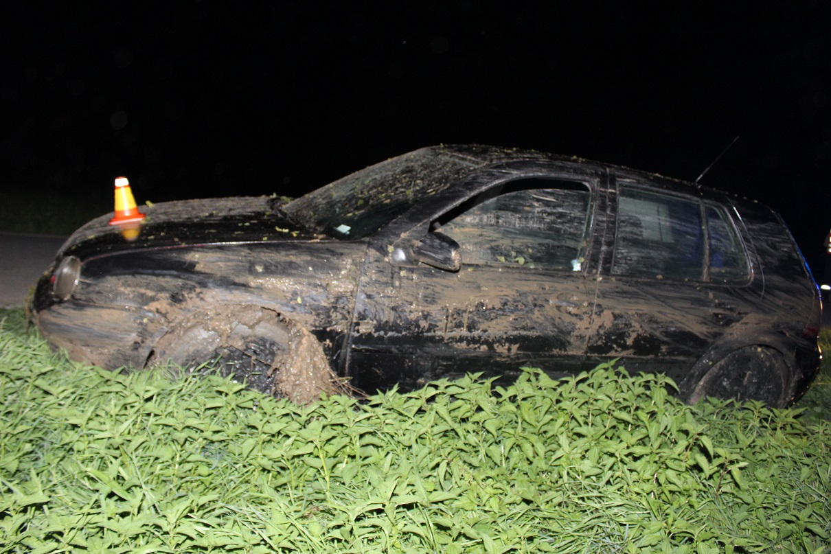 Sedmadvacetiletý řidič však nedojel se svým Volkswagenem Golf daleko – po pár stovkách metrů nezvládl pravotočivou zatáčku, přejel do protisměru a skončil s autem v hlubokém příkopu vedle silnice.