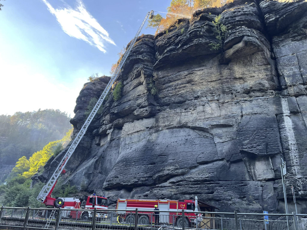 Hasiči z Olomouckého kraje bojují s požárem v Českém Švýcarsku