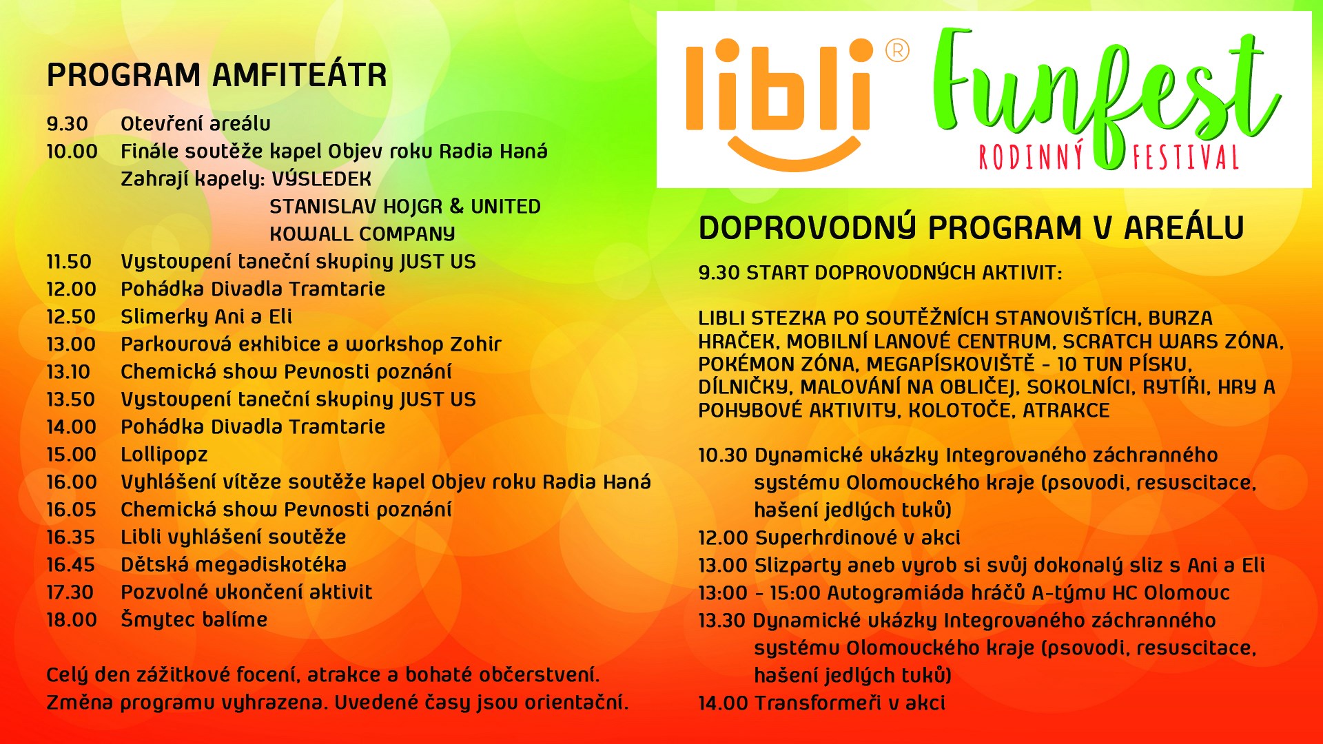 Libli Funfest je rodinný festival, který můžete navštívit v neděli od 10:00 do 19:00 v Korunní pevnůstce v Olomouci. Na místě si děti i dospělí mohou užít zábavu třeba v mobilním lanovém centru, mega pískovišti a na různých atrakcích. Nebude chybět ani Pokémon zóna, kde si sběratelé mohou vyměnit kartičky. Chcete si vyrobit sliz, potkat své oblíbené superhrdiny nebo skouknout akční představení parkouristů? Pak tu nesmíte chybět!