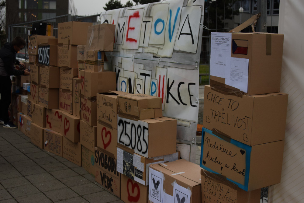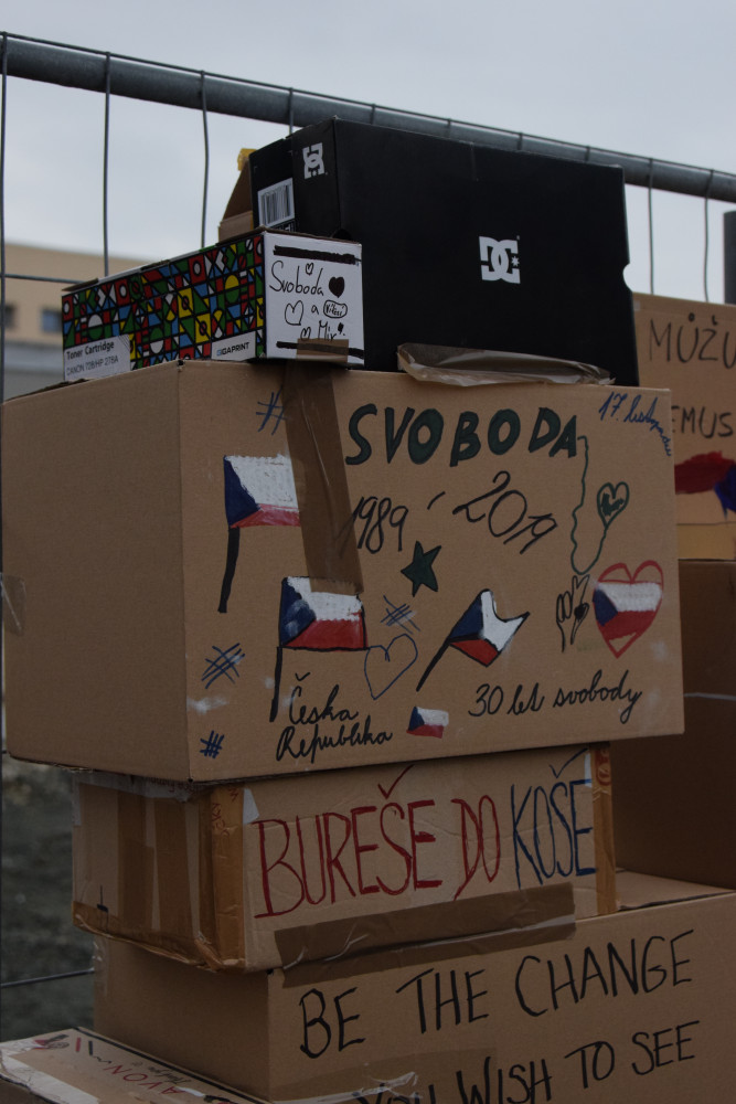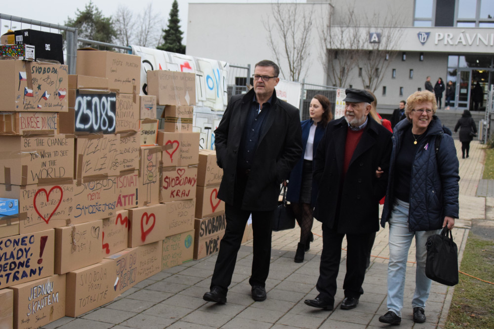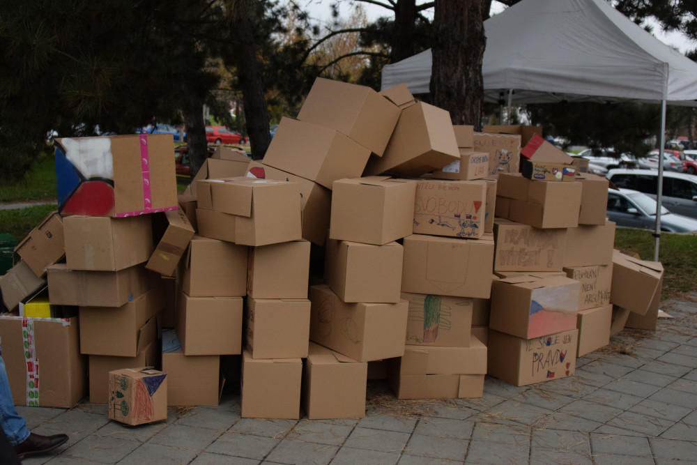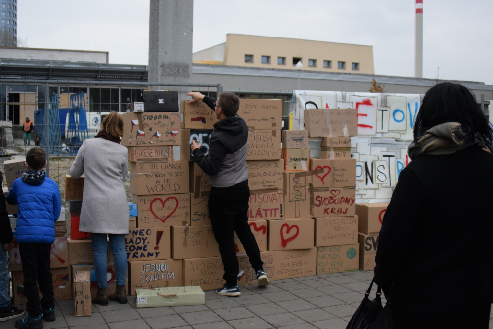 První desítky papírových krabic popsaných revolučními hesly z listopadu 1989 i vzkazy na téma současné politické situace dnes přinesli lidé na prostranství před Právnickou fakultu Univerzity Palackého Olomouci, kde bude tento týden po 30 letech opět postavena netradiční protestní zeď. V rozlehlé budově fakulty dříve sídlil okresní výbor KSČ a v listopadu 1989 před ní Olomoučané postavili z papírových krabic mohutnou hradbu.