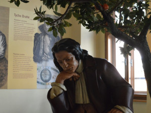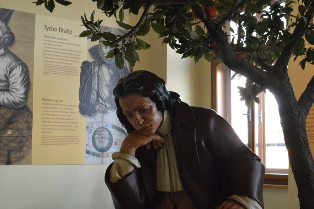 V posledním sálu přízemí mě čeká místnost myslitelů, tak ji tady pracovně říkají. Na stěnách jsou zvěčněny citáty velkých myslitelů, kteří o čase přemýšleli ve své době takříkajíc nadčasově. Uprostřed pod jabloní sedí Newton a přitom se dívá na spadlé jablko, přičemž vymýšlí zcela zásadní teorii relativity, není tedy divu, že byl zvěčněn právě zde. Díky výkladu od Kateřiny se místy opravdu cítím jako v dávných dobách. Při vysvětlování jednotlivých tezí velkých myslitelů se jí lesknou oči radostí a je ve svém živlu. Pomalu se přesunujeme do druhého patra, kde na mě čekají krásné hodiny ze všech koutů světa.