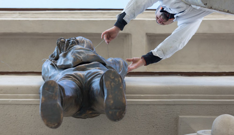 Od pondělí 20. listopadu už bude pod římsou Muzea umění podezřele ticho. Lezec umělce Davida Černého, který tak rád přes jaro a léto nadával hlasem Davida Kollera, se uloží k zimnímu spánku.