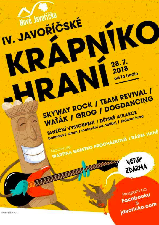 Spolek Nové Javoříčko zve na již čtvrtý ročník Javoříčského Krápníkohraní, které se koná v sobotu 28. července v Javoříčku.