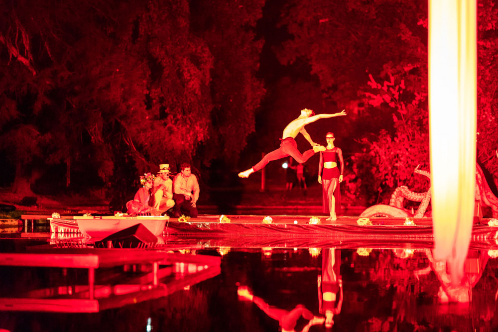 Jednotliví umělci se ve spolupráci s herci spřáteleného divadla Tramtarie (Martin Dědoch, Barbora Šebestíková, Vítek Píštecký a Adam Joura) postarali za doprovodu hudby a nápaditých světel o nevídanou podívanou. Divadelní představení bylo orámováno hudebními koncerty a noční dýdžejskou show. Vizuální stránku večera měla na starost Adéla Szturc, hudbu Martin Peřina a světla Honza Machát. „Všem patří velký dík, jsem rád, že se nám i v náročném prostředí parkového jezírka podařilo uskutečnit všechny naše nápady a představy. Vše nakonec fungovalo, jak mělo,“ dodal organizátor festivalu Šimon Pelikán.