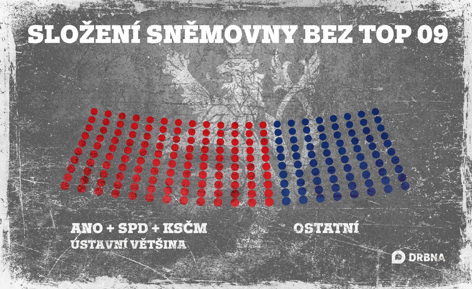 A jak by se změnilo rozložení sněmovny, kdyby TOP 09 skončila těsně pod 5 % (a za jinak nezměněných podmínek)? Její mandáty by se přerozdělily ostatním parlamentním stranám, v Praze by tak po jednom mandátu získalo ANO, SPD a Piráti. Ve Středočeském kraji by mandáty získaly KDU-ČSL a SPD. V Jihočeském kraji a Jihomoravském kraji by mandát po TOP 09 získalo opět ANO. Celkem by tak ANO získalo 3 mandáty, SPD 2 a Piráti 1 nový mandát, což by teoreticky umožnilo vznik dvou nových dvoučlenných koalic, buď ANO s SPD (105) nebo ANO s Piráty (104). Zároveň by to znamenalo, že případná koalice antisystémových stran (ANO, SPD a KSČM) by ve Sněmovně právě dosáhla na ústavní většinu, mohla by pohodlně hlasovat o změnách ústavy a tím zvýšit tlak na pojistnou roli Senátu v parlamentní demokracii České republiky.