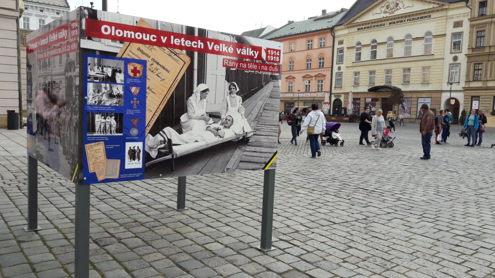 Dvě desítky panelů s dobovými fotografiemi byly instalovány před budovou radnice v historickém centru Olomouce, kde připomínají 100 let od vzniku Československa. Snímky zachycují dění v Olomouci především v roce 1918, kdy se ve městě s německou většinou konala velká shromáždění obyvatel a radnici postupně přebírala nová česká správa. Panely s dobovými fotografiemi v centru Olomouce zůstanou do 28. října.
