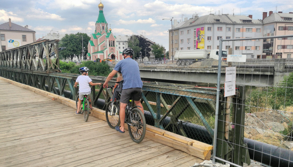 Starý most, který byl v létě zbourán, byl postaven jinak než se předpokládalo řekl mluvčí radnice Michal Folta. Stavba je součástí rozsáhlých protipovodňových opatření v této části města. Od jara je kvůli stavbě automobilová doprava odkloněna do vedlejších ulic a nedaleko mostu v Komenského ulici byla otevřena provizorní lávka pro pěší. „K původnímu mostu chyběla jakákoli stavební dokumentace, a tak nebylo předem známo, jak byl starý most ve dně řeky založen. Při demolici se ukázalo, že v základech byla velká betonová deska, o níž nikdo nevěděl, a také piloty původního mostu jsou v zemi uložené jinak, než se čekalo," uvedl Folta.