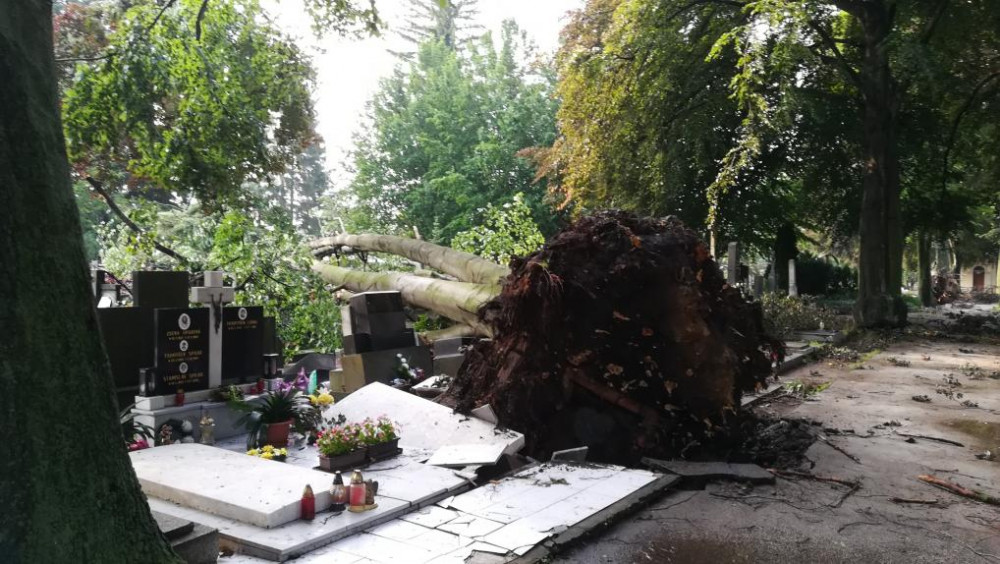 Několik desítek hrobů poničila pondělní bouřka na městském hřbitově v Prostějově. Na místa posledního odpočinku obyvatel Prostějova popadaly silným větrem polámané větve i vyvrácené stromy.