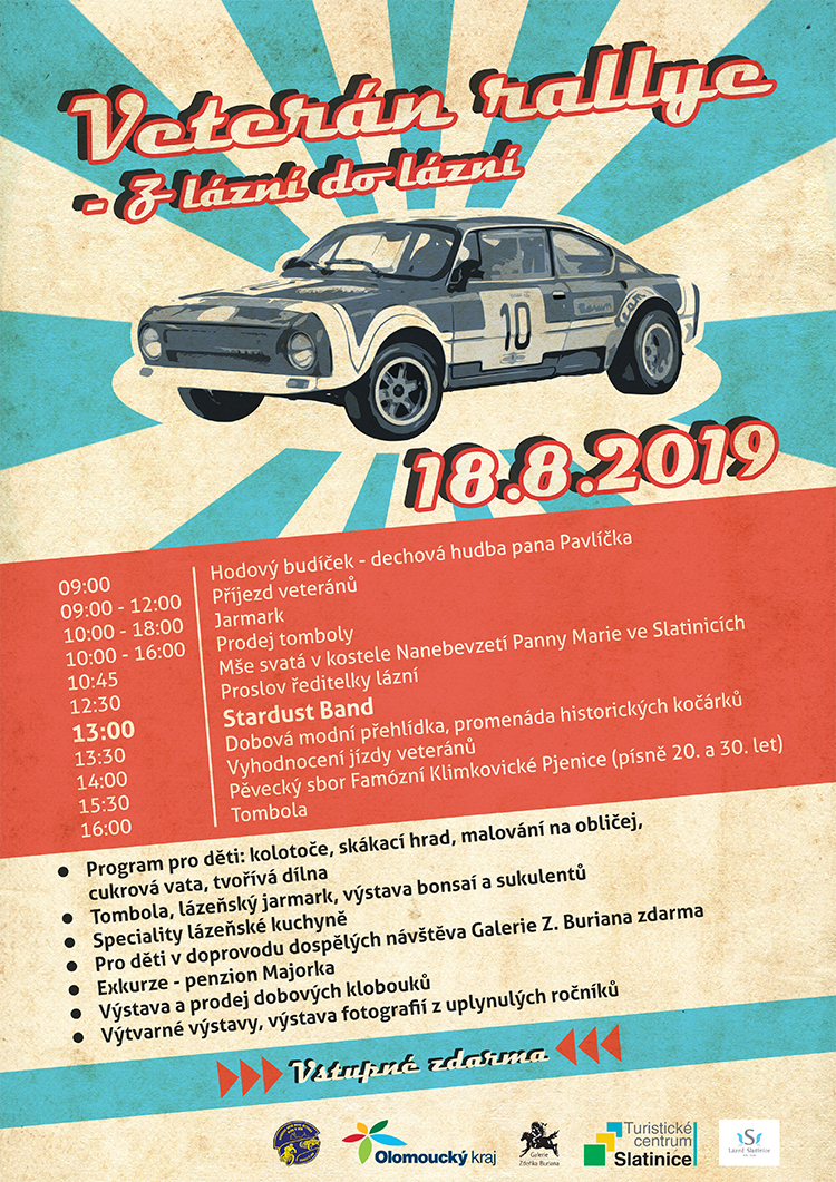 Akce bude zahájena v 9:00 v Lázních Slatinice. Zabaví se malí i velcí díky bohatému celodennímu programu. Na své si přijdou jak milovníci moto veteránů, tak i hudby. Nebude chybět ani oblíbený vintage jarmark a tombola.