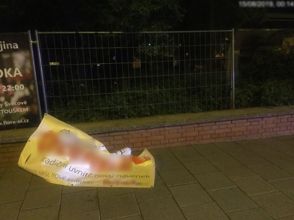 Po příjezdu strážníci zjistila, že se jedná o devatenáctiletého mladíka ze Šumperska. Ten se přiznal, že strhl reklamní poutač 3 x 1,5 metru z bariéry vystavěné kolem areálu výstaviště. Došlo tak k poškození poutače.