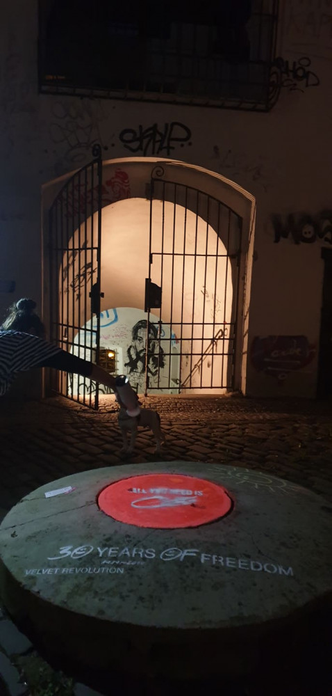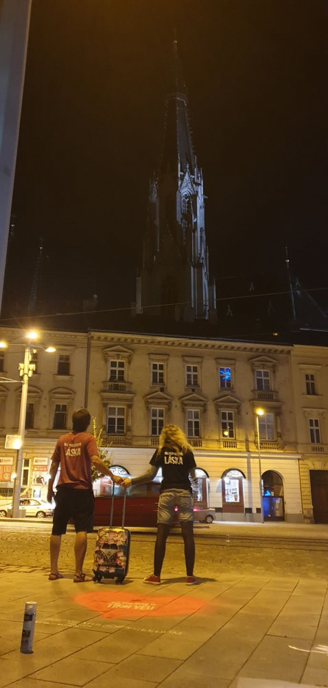 „No a tím jsme u té včerejší Olomouce, ta je jednou z těch událostí kde šíříme LÁSKU a připomínáme důležitost svobody tvořit. Pro nás, kterým toto město přirostlo snad po boku Barcelony nejvic k srdci, bylo samozřejmostí, že zde musíme vytvořit něco silně symbolického," říká Petr Bouška, kterého včera chytili strážníci přímo při činu.