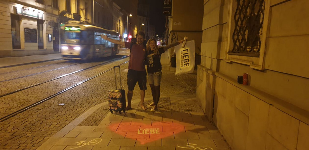 Ve čtvrtek ve večerních hodinách přistihla městská policie v Olomouci na náměstí Republiky sprejera, který křídovými barvami sprejoval na chodník velké srdce. Petr Bouška, který čin provedl, patří do LÁSKA collectivu a říká: „All you need is LÁSKA. Přestaňme řešit p***ny a záměrme se na to co je nejdůležitější a co nás všechny spojuje a na čem se všichni nějak dokážeme dohodnout, a to je svoboda, rodina a hlavně LÁSKA. Ta se fakt blbě hejtuje."