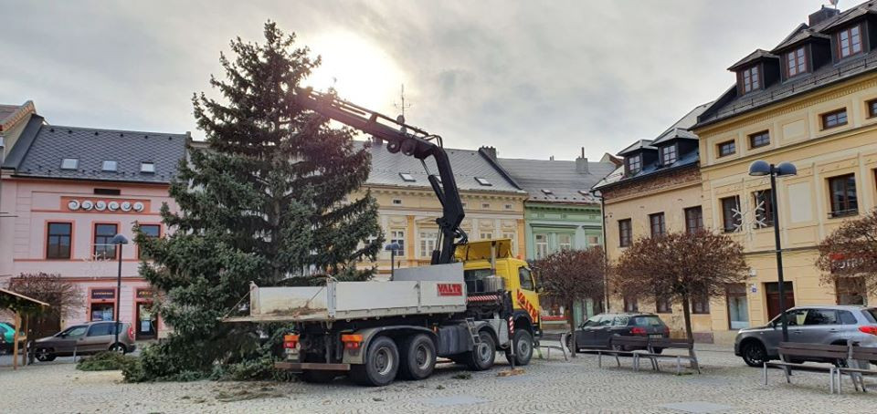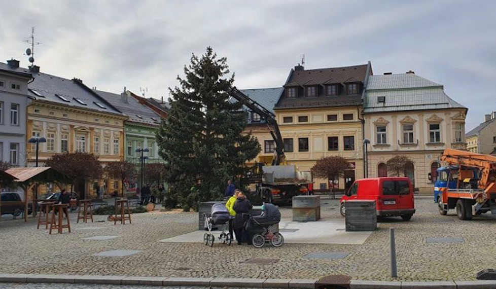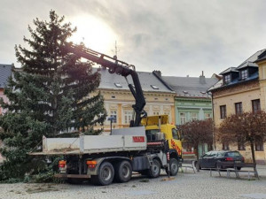 Na náměstí ve Šternberku dnes přivezli vánoční stromeček. Pochází z Bohuňovic a slavnostně se rozsvítí tuto neděli v 17:00.