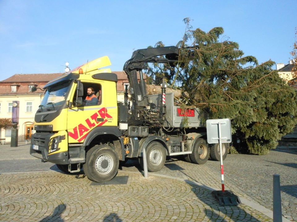 FOTO: Ve Šternberku už stojí vánoční strom. Je z Bohuňovic a rozsvěcovat se bude v neděli