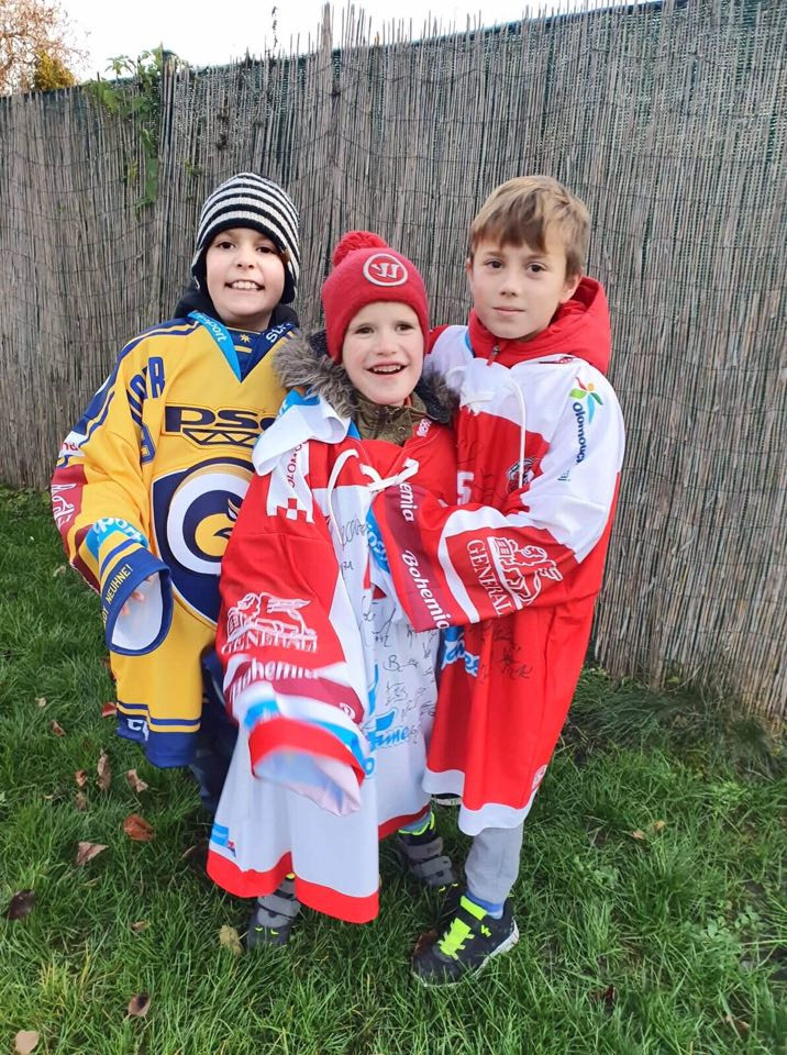 Za prvé si mohou vybrat odměnu od obchodního partnera. Můžou si vybrat knihu, zážitek nebo vstupenku na přednášku. Další možností je darovací smlouva, kterou lidé najdou na naší stránce modry-kruh.cz/podporte-tobika-a-matyska/. V úterý 17. prosince jsme se domluvili s restaurací U Ptáka, kdy každý, kdo řekne heslo „modrý kruh” automaticky dvacet procent své útraty věnuje právě na autistické děti. Sbírku jsme se rozhodli ozvláštnit aukcí předmětů, které nám věnovaly sportovní kluby. Jedná se o dva podepsané dresy od všech olomouckých hokejistů, dále podepsaný dres od hokejistů ze Zlína plus podepsaná hokejka. Sigma Olomouc do aukce darovala rovněž podepsaný dres.