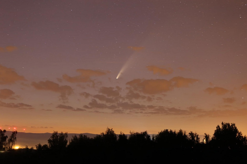„Každopádně jsem fotil i na Klínovci, než jsem stihl pořádně zaostřil, tak kometa zmizela za mraky. Nakonec se zadařilo. Stačilo výlet kousek za Sokolov k jezeru Medard,“ popisuje Rund.
