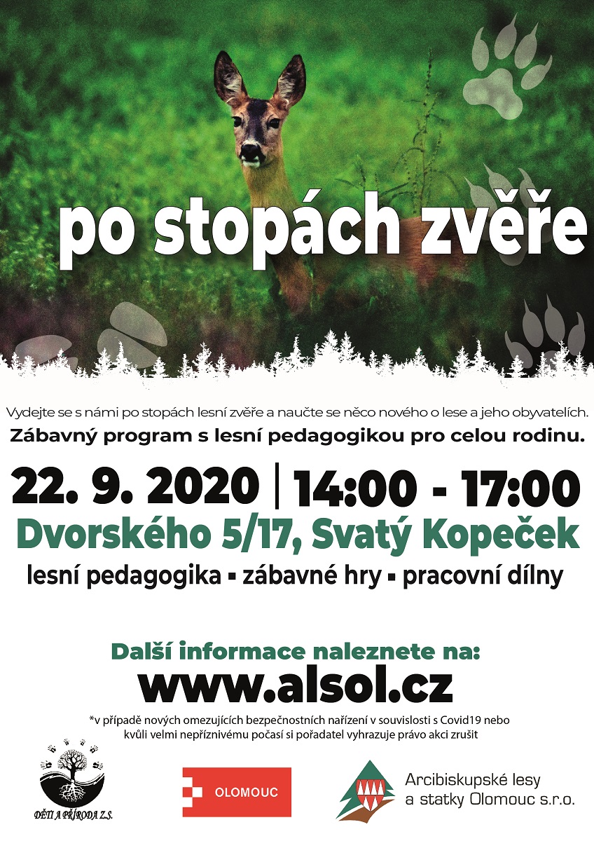 Společnost Arcibiskupské lesy a statky Olomouc, která je správcem největšího soukromého lesního majetku v České republice, pořádá v úterý, 22. září, den s lesní pedagogikou s názvem Po stopách zvěře. Akce se uskuteční ve venkovním areálu sídla společnosti na Svatém Kopečku a návštěvníkům nabídne zábavný a naučný program pro celou rodinu.