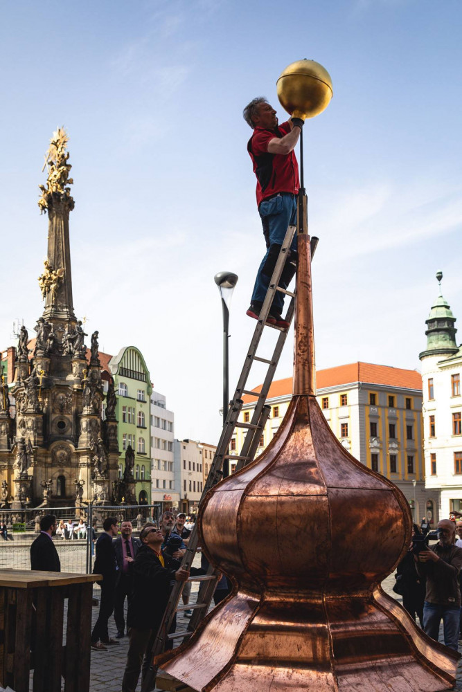 Do rekonstruované věžičky olomoucké radnice se dnes vrátil tubus s archivními materiály, který byl ve střešní konstrukci nad olomouckým orlojem uložen přes tři století. Původní kovovou schránku doplnili zástupci města dalšími dvěma, do nichž vložili aktuální dokumenty a pamětní mince. Mosazná schránka byla do pozlacené makovice pod korouhvičkou vložena při opravě střechy v roce 1962. Objevena byla loni na podzim při opravě věžičky.