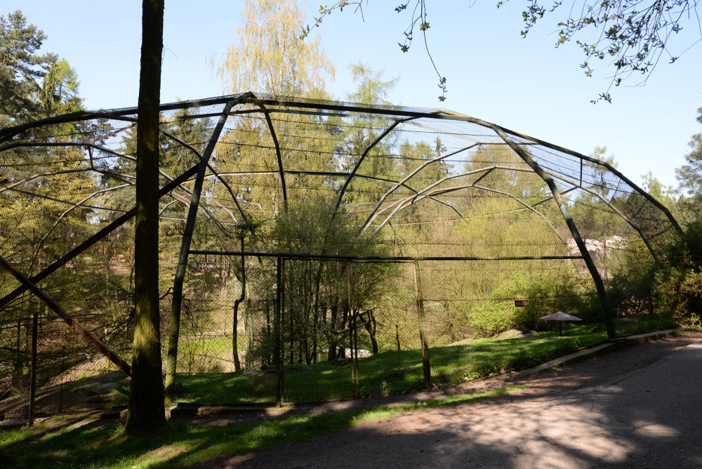 Voliéra ve tvaru bábovky byla v této části zoo dokončena v roce 1993, avšak v zimě téhož roku nevydržela nápor sněhu a o vánočních svátcích se zhroutila. Dodavatelská firma postavila voliéru znovu v roce 1994 a ptáci do ní byli vypuštěni na jaře 1995. Voliéra má od roku 1994 zesílenou konstrukci.