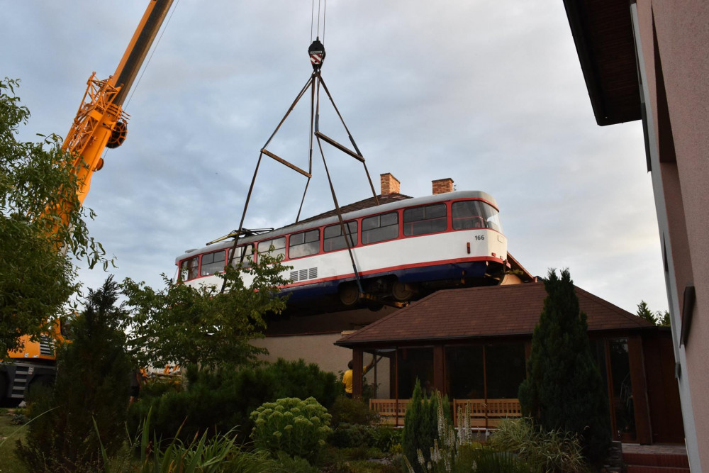 FOTO/VIDEO: Olomoucká tramvaj zdobí střechu garáže u rodinného domu v Jihlavě