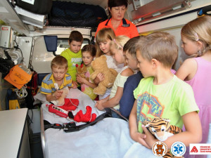 Poté děti navštívily výjezdové stanoviště záchranářů na ulici Aksamitova, kde jim záchranáři ukázali sanitní vozy a jejich vybavení, i s praktickými ukázkami fungování jednotlivých přistrojů.