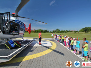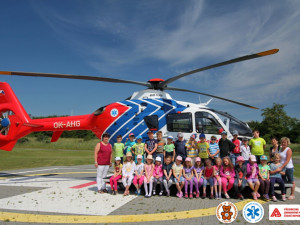 Nakonec si děti prohlédly sanitky, záchranný vrtulník a heliport v Neředíně. Dokonce si mohly vyzkoušet, jaké je to sedět v kabině vrtulníku.